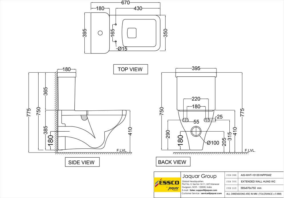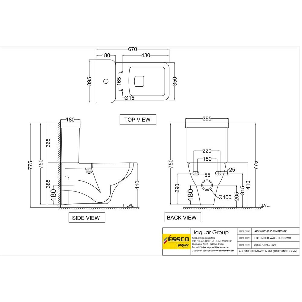 Bowl With Cistern For Extended Wall Hung WC With PP Soft Close Slim Seat Cover, Hinges, Dual Flush Cistern Fitting And Accessories Set,