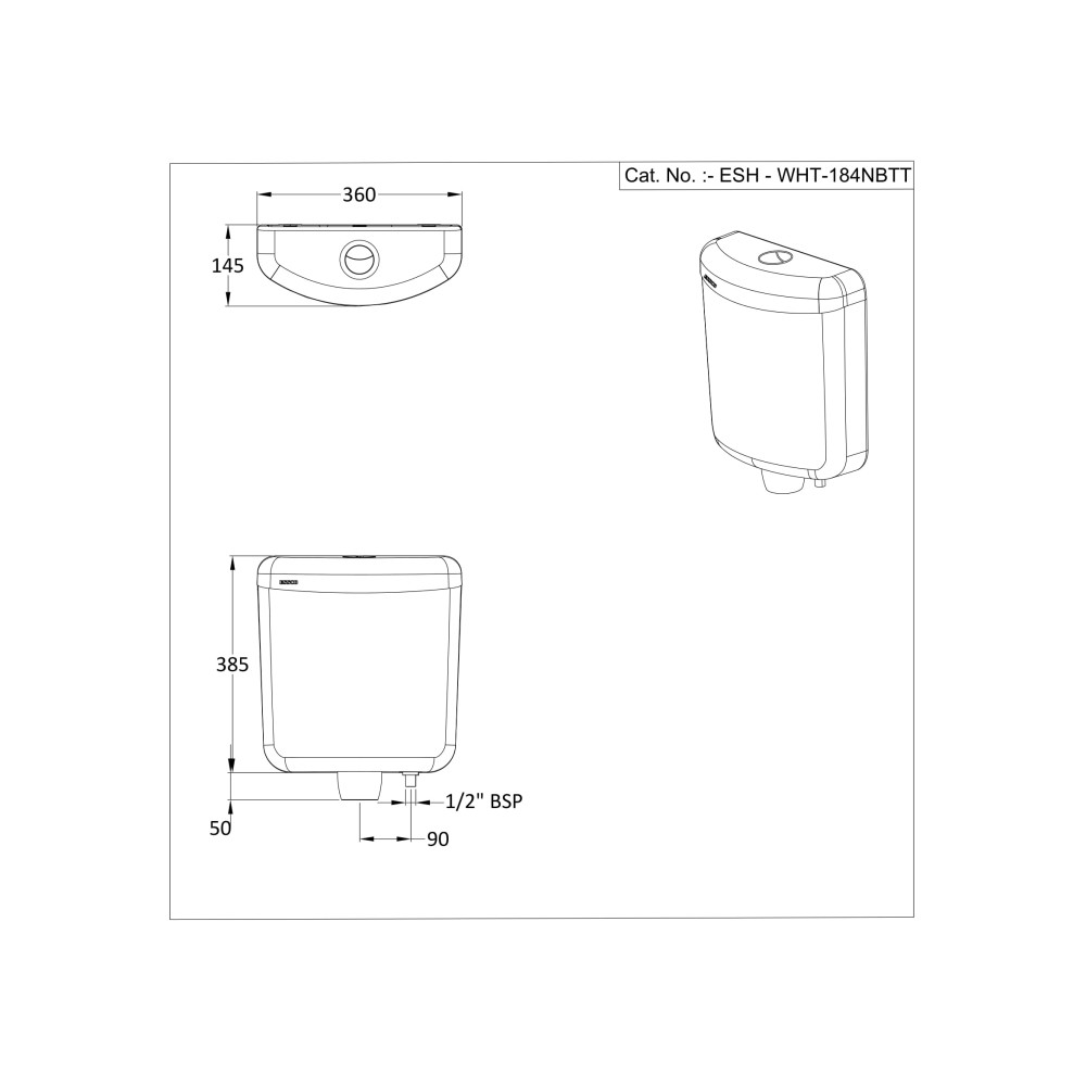 ওয়াল হাং সিস্টার্ন (কম্প্যাটিবল উইথ 39mm ড্রেইনেজ পাইপ্স) উইথ ব্ল্যাক টপ অ্যান্ড ইনস্টলেশন কিট, বাট উইথআউট ড্রেইনেজ পাইপ্স (স্যুইটেবল ফর ওরিস্যা প্যান)