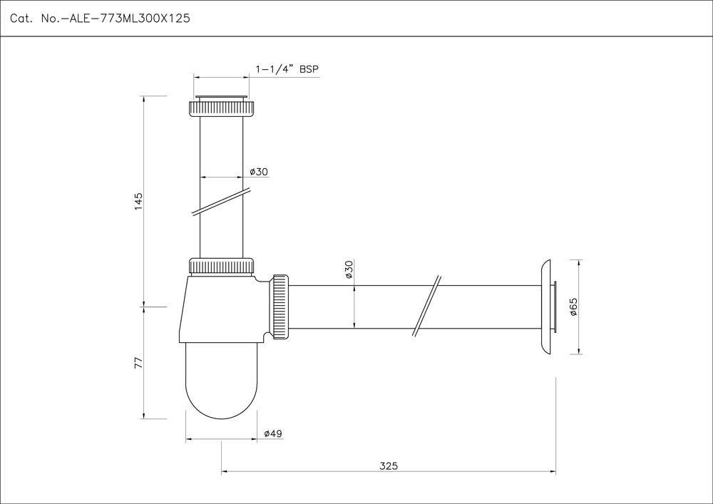 Bottle Trap with Fully Casted Body 32 mm with 300 mm and 125 mm Long Connecting Pipes