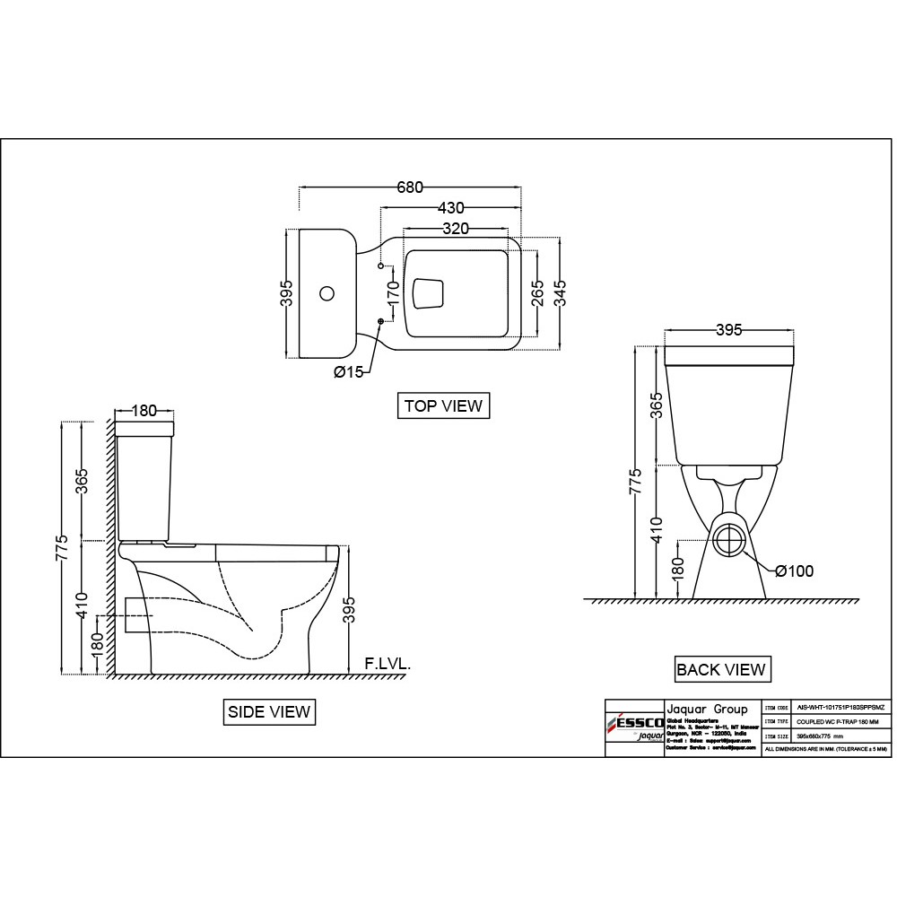 Bowl With Cistern For Coupled WC With PP Soft Close Slim Seat Cover, Hinges, Dual Flush Cistern Fitting, Fixing Accessories And Accessories Set, Size: 395x680x775 mm, P Trap-180 mm