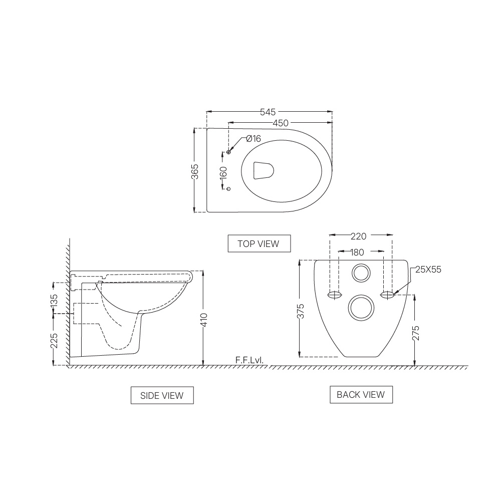 Wall Hung WC With PP Soft Close Seat Cover, Hinges, Accessories Set, Size: 365x545x375 mm