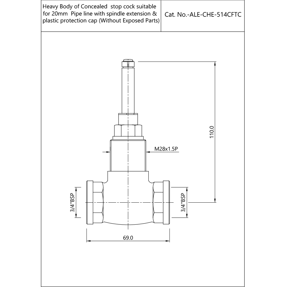 Heavy body of concealed stop cock suitable for 20mm Pipe line with spindle extension & plastic protection cap (without Exposed Parts)