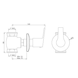 Flush Cock with Wall Flange, Size: 25 mm