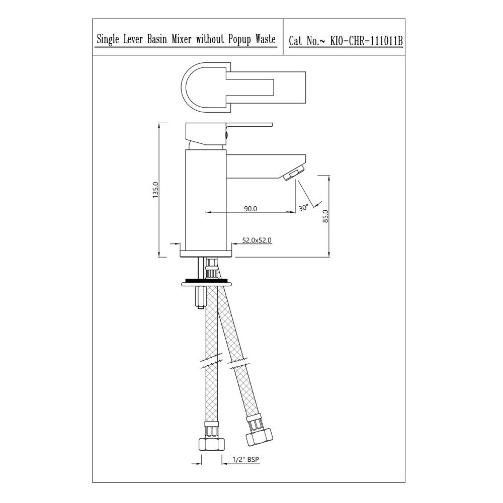 Single Lever Basin Mixer without Popup Waste with 450mm Long Braided Hoses
