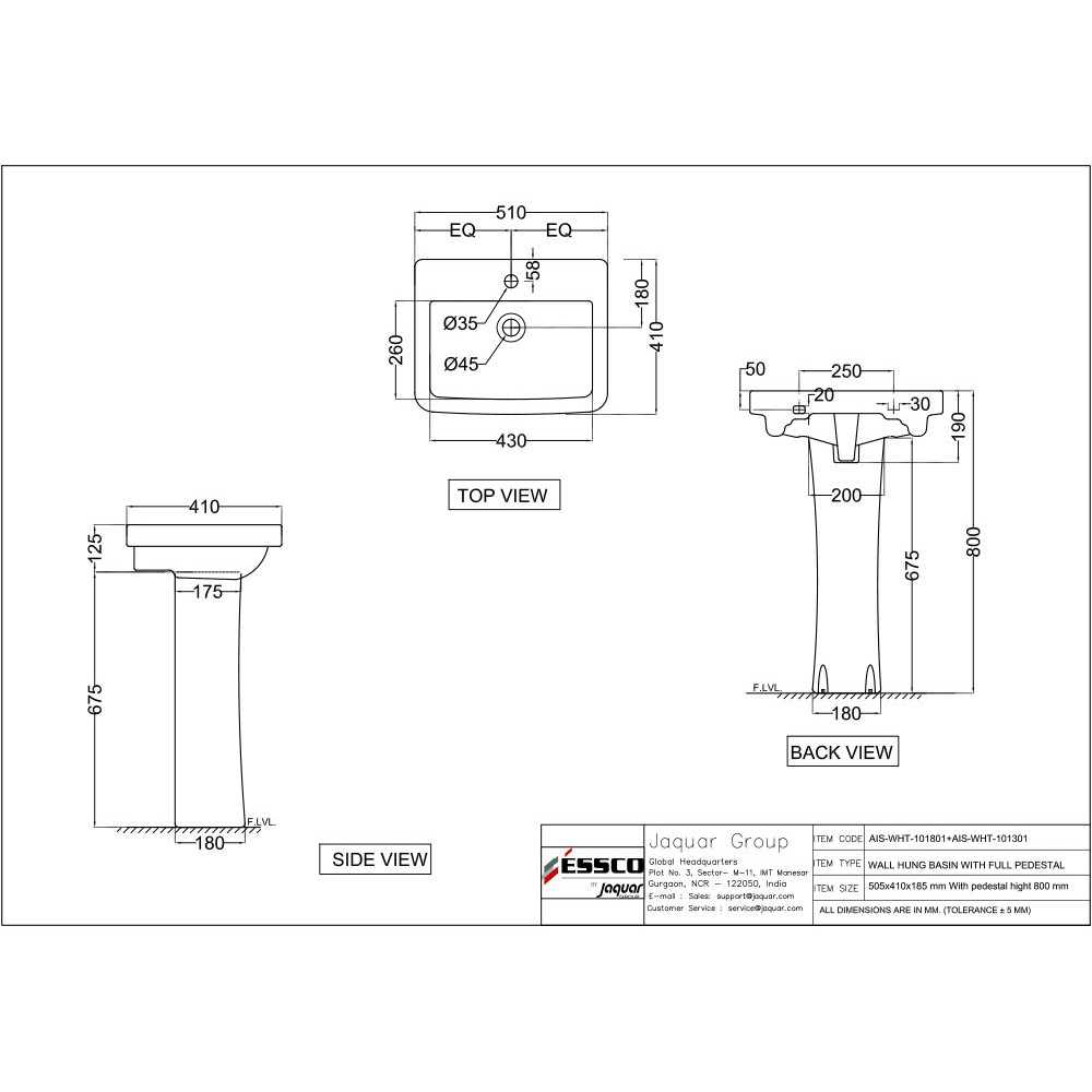• Jaquar reserves the right at its sole discretion, to change/modify/alter any product specification at any time without notice, where improvement can be effected in design, development and dimensions.