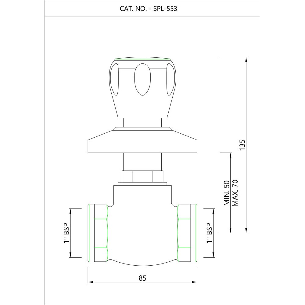 Flush Cock with Wall Flange, 25 mm size with Plain Knob