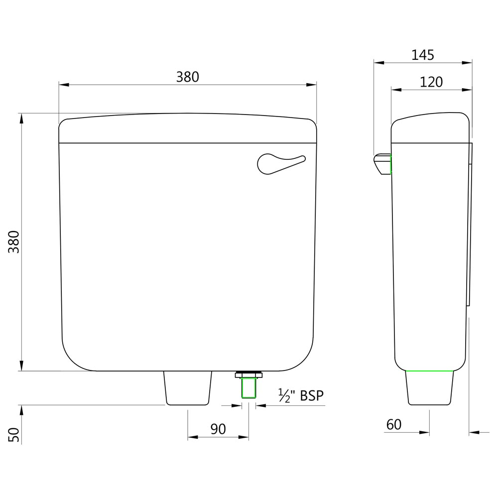 Wall Hung Cistern with 39mm Drainage L-Bend Pipe with Gasket & Installation Kit (Suitable for EWC)