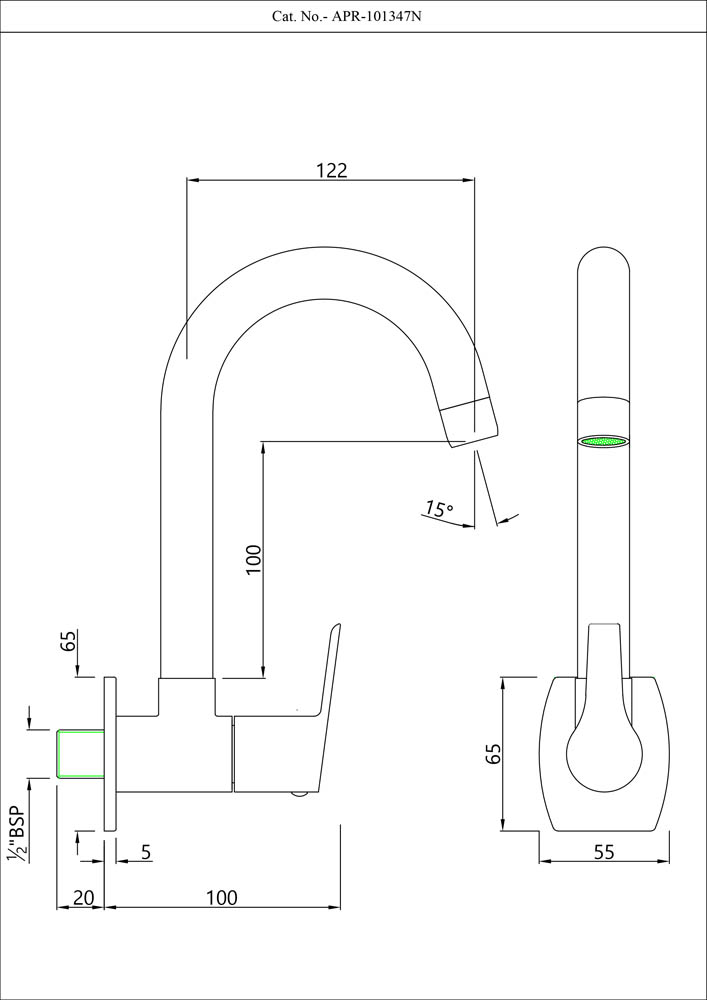 Sink Cock with Swinging Spout (Wall Mounted Model) with Wall Flange