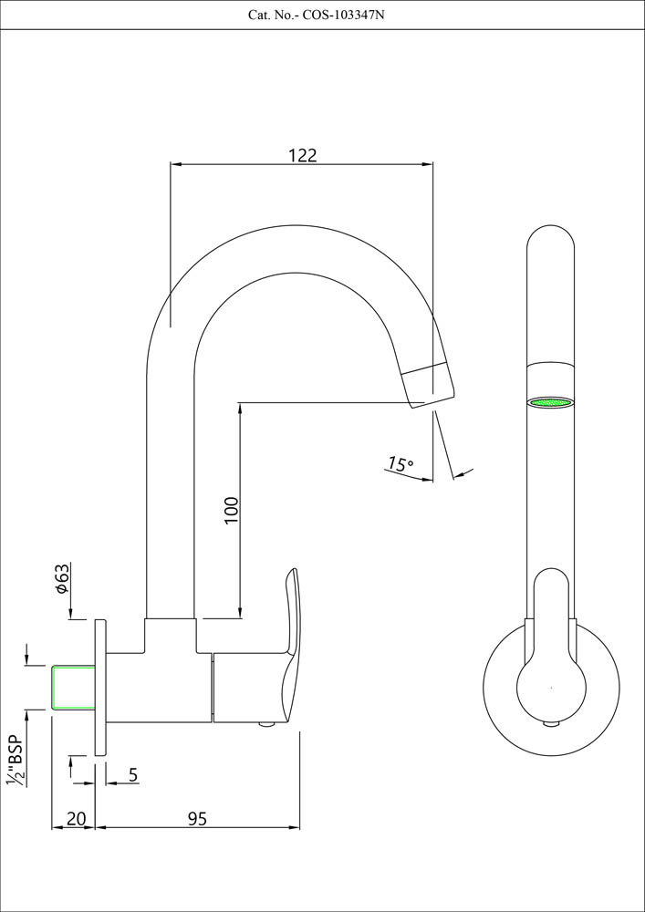 Sink Cock with Swinging Spout (Wall Mounted Model) with Wall Flange